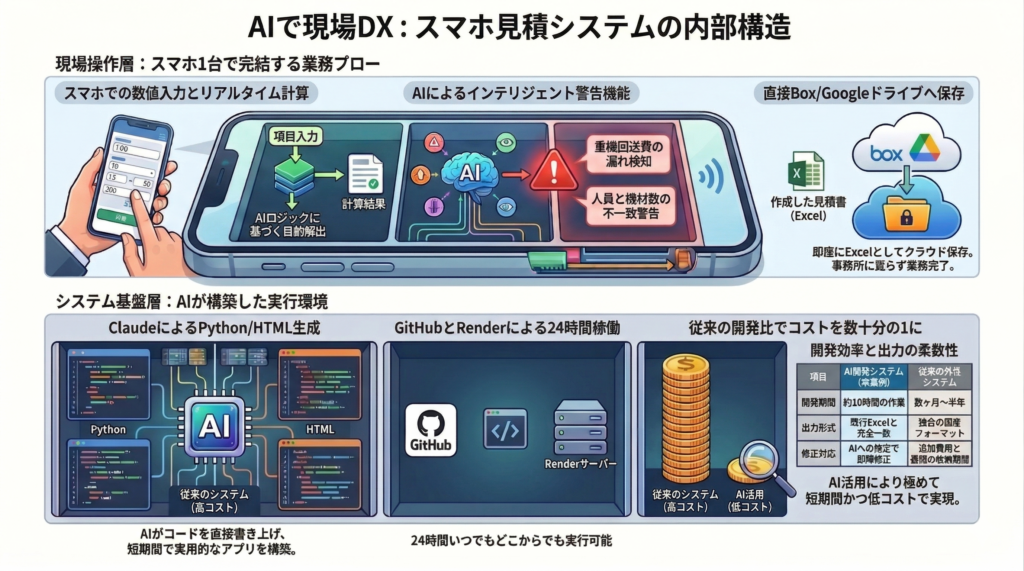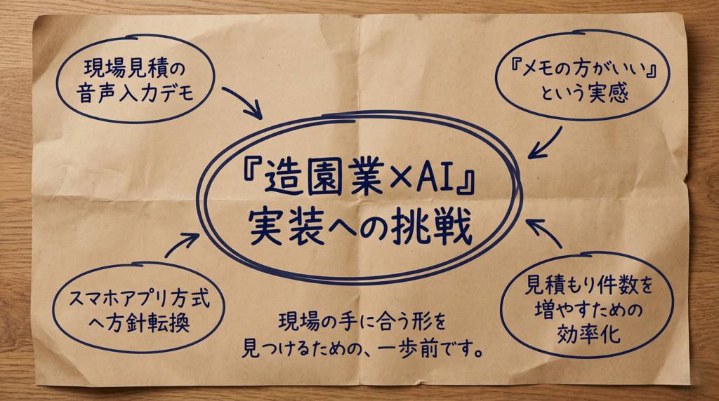 その問いに、実際の支援現場からお答えします。 中小企業診断士が経営の現場に入り込み、社長と一緒にAIを実装。 見積もり・数字の見える化・営業の仕組み化—— 机上の提案ではなく、手を動かした記録だけを載せています。