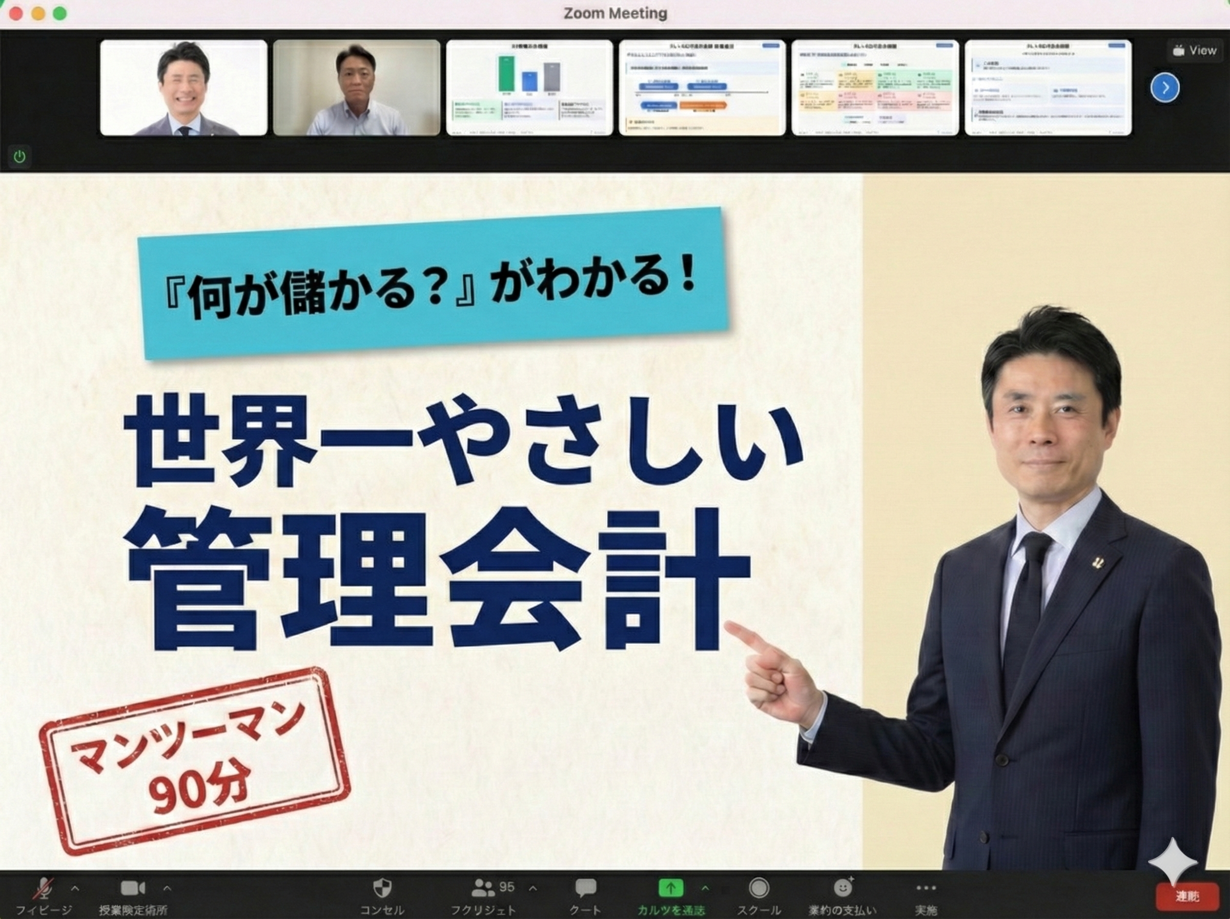 会計には、会社法で公告が義務付けられている財務会計と、社内の事業管理に用いられる管理会計の2種類がありますが、当講座では後者の目的と仕組みについて学習します。具体的には、変動費、固定費、損益分岐点売上高、限界利益、貢献利益について深掘りします。講義終了後には、これら管理会計の知識を駆使して、現場における採算管理を担えるようになります。