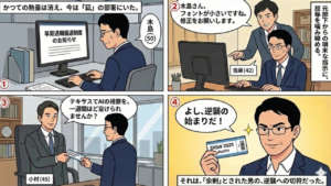 まるでSF映画のワンシーンのような光景が、当たり前の日常としてそこにあった。テクノロジーは、確実に現実世界を書き換えている。 木島は、青空を突き刺すような強い日差しと、走り去る無人の車を見つめた。「時代遅れ」とされた自分が、最先端のテクノロジーと交錯する。その奇妙な高揚感の中で、彼が心の中に隠し持っていた「プロフェッショナルとしての牙」が、再び研ぎ澄まされようとしていた。